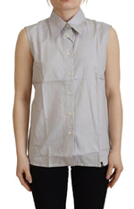 Ferre Light Gray Stripes Cotton Sleeveless Collared Top
