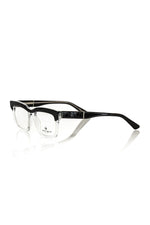 Clubmaster Model Eyeglasses. Thick Transparent Frame With Black Top Profile With Geometric Pattern. Colored Auctions.