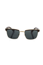 Clubmaster Model Sunglasses. Frame With Upper Profile In Brown Leather. Blue Shaded Lens. White Auctions.