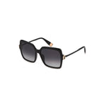 sunglasses, acetate frame, square lens, black lens, contrasting details, lens width 58 mm, bridge width 17 mm, temple length 140 mm, logo