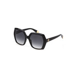 sunglasses, acetate frame, square lens, smoked lens, contrasting details, lens width 56 mm, bridge width 19 mm, temple length 140 mm, logo