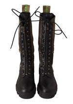 Gaelle Black Green High Combat Boots Lace Up Military Shoes