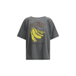 The Banana T-shirt by Ganni features a playful and contemporary design with a classic round neckline and short sleeves. The piece is highlighted by a banana graphic print and contrasting GANNI logo, adding a bold and fun touch. Side tie details complete the silhouette, offering a modern twist that makes it perfect for relaxed, everyday styling.