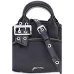 Ganni’s Polochon mini Handbag combines functionality with contemporary style. Featuring a top handle and an adjustable shoulder strap with metallic trim, it has a secure zipper closure, a front pocket and two side pockets for convenient organization. The silver-tone GANNI logo completes the design with a distinctive touch.
