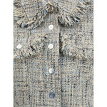 GANNI’s signature cotton Summer Jacket with a cropped cut and contemporary character. The model features a classic collar enriched with bangs applied along the perimeter, which give an original and dynamic touch. The front closure is with buttons, while the garment is completed with two side welt pockets and two slit pockets with flap applied on the front. Perfect for enriching casual looks with a distinctive detail.