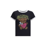 Ganni’s Teddy T-Shirt is a casual and witty garment with a round neckline, short sleeves and GANNI logo. It is embellished with a teddy bear print and the words “Have a nice day! Please recycle,” combining irony and environmental awareness.