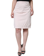 GF Ferre Beige Cotton Stretch Mid Waist Pencil Cut Skirt