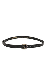 GF Ferre Black Leather Slim Gold Tone Buckle Waist Men Belt