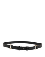 GF Ferre Black Leather Thin Gold Metal Brass Buckle Waist Belt
