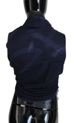 GF Ferre Dark Blue Wool Neck Wrap Shawl Fringes Scarf