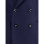 The Double-Breasted Jacket in Virgin Wool combines classic elegance with refined sartorial details. The button closure and peak lapels create a sleek, tailored line, while the two front pockets and small pocket on the left side provide functionality without compromising style. Buttons at the sleeve ends complete the design with a meticulous touch, highlighting the quality and natural softness of the virgin wool. A jacket designed to enhance the silhouette with discretion and sophistication.