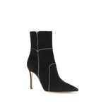 The Suede Ankle Boots by Gianvito Rossi combine elegance and character in a refined design. With an above-ankle height and a tapered silhouette, they are enhanced by a stiletto heel and a figure-slimming almond toe. Metallic leather details add a bright, contemporary touch, perfect for completing sophisticated daytime and evening looks.