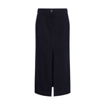 Cotton Midi Skirt by Giorgio Armani, front zipper and button closure, waistband loops, two side welt pockets, front slit, monochrome pattern, regular fit.