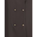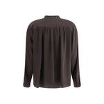 Giorgio Armani’s silk Shirt features a sophisticated and contemporary design. It features a double-breasted closure with embossed buttons, a mandarin collar, and front darts at the shoulders, which shape the silhouette with elegance and precision. A statement piece, perfect for those who love a refined and distinctive style.
