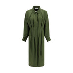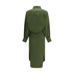 The poplin shirt Dress by Givenchy is an elegant and refined piece, crafted from cotton poplin. The midi-length design with long sleeves features a classic collar and hidden button closure for a clean and sophisticated look. Buttoned cuffs and couture stitching enhance the garment’s sartorial quality, while the narrow waist and volume at the back add a feminine and dynamic silhouette. Perfect for a chic and timeless look.
