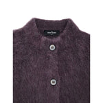 Mandarin Collar Cardigan in Gran Sasso Bordeaux. Boxy fit, high mandarin collar, front button fastening, in a soft-touch alpaca wool blend.