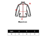 In light red cotton/silk, front closure with covered zip, turtleneck collar with contrasting edge and elasticated waistband.