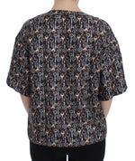 Dolce & Gabbana Gray Gold Key Print Silk Blouse T-shirt