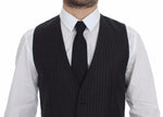 Dolce & Gabbana Gray Striped Wool Logo Vest Gilet Vests