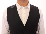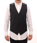 Dolce & Gabbana Gray Striped Wool Single Breasted Vest