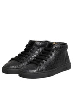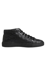HIDE & JACK Black Leather Lace Up Mid Top Sneakers Shoes