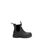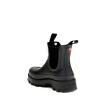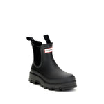 The Elements unisex rubber Chelsea Ankle Boots by Hunter reinterpret the classic British style in a modern way. Made with a stretch rubber upper, they combine comfort, durability and contemporary style. The thick contoured sole ensures stability and grip, while Hunter’s signature red rivet lends an unmistakable distinctive touch. Double webbing details complete the design, designed to ensure durability and practicality for every occasion.