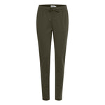 The ICHI IHKATE PA2 Long women’s cigarette trousers, model 20105036, combine modern style with everyday comfort. Crafted from a technical blend fabric (74% polyester, 22% viscose, 4% elastane), they offer a slim fit that enhances the silhouette while ensuring freedom of movement. The design features a clean line, mid-rise elastic waistband with adjustable drawstring, front pleats, and functional side pockets. Perfect for both office and leisure, these trousers are a versatile wardrobe essential that pairs easily with shirts, sweaters, or blazers for an elegant or casual look.