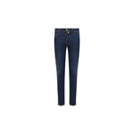 Jacob Cohën jeans with stretch cotton, slim fit dark blue Bard model, five pocket model with embroidered logo on the pocket, silver button, yellow ponyskin patch, yellow stitching details