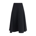 The black Jupe Triangle Skirt features a concealed zip closure, flared silhouette, and midi length, offering an essential and feminine look suitable for various occasions