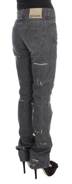 John Galliano Gray Wash Cotton Torn Straight Fit Jeans