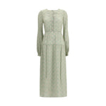 Kristina Ti’s Silk long Dress is a fluid and feminine garment enhanced by a delicate foliage print. The mid-bust button closure gives a discreet and elegant touch, while the elasticized waist enhances the silhouette naturally.