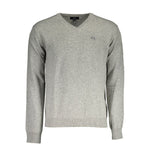 long sleeves sweater, "v" neckline, regular fit, embroidery, logo