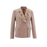 Double-breasted jacket with ruffles on the collar in powder colour Lardini, two front pockets with flaps, contrasting beige buttons, regular fit Composition: 100% Polyester-Interior Sku:23FE176