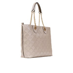 The Liu Jo ECS M TOTE AF5197 E0538 large women’s bag combines contemporary style and practicality. Crafted from high-quality 100% polyurethane, it features an elegant quilted texture with a geometric pattern and gold-tone metal details, including the front logo and chain handles. The double handle, with chain and matching material inserts, ensures comfortable carrying by hand or over the shoulder. Equipped with a spacious main compartment with zip closure and multifunctional inner pockets, this tote is ideal for busy days, offering ample space for all your essentials. The stylish branded pendant adds a distinctive touch, making it perfect for both office and leisure.