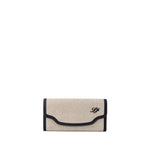 Beige Canvas and Loro Piana Leather Wallet. Covered snap button opening, two compartments, card holders, and internal zip pocket.
