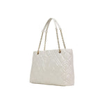 The Love Moschino JC4145PP1L large women’s bag is a sophisticated and trendy accessory, perfect for those seeking both style and functionality. Crafted from 100% polyurethane, this bag features quilted matelassé stitching that adds a modern and elegant touch. Gold-tone metal details, such as the double chain handles and the front plaque with the raised Love Moschino logo, provide brightness and refinement to the design. The spacious interior compartment allows for easy organization of all personal belongings, making it ideal for everyday use, work, or leisure. This is the perfect choice for those who want a roomy, durable, and always fashionable accessory.