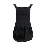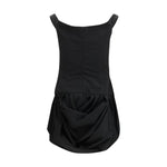 The off-shoulder puff skirt mini Dress by Magda Butrym captures the brand’s signature dialogue between structure and volume. The fitted bodice is shaped with precise darts that contour the waist and frame the shoulders with a wide, elegant neckline. Below, the skirt blooms into a voluminous, pleated bubble silhouette that curves softly at the sides, adding sculptural movement. Finished with a concealed back zip and a lined bodice for a smooth, supportive fit, it offers a refined interpretation of contemporary femininity.