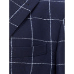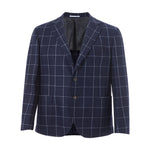 Blue wool jacket with contrasting checks, two-button front fastening, two front patch pockets and breast pocket. Two inside pockets, unlined, regular fit. Composition: 100% Wool-Sku inside:22FE124
