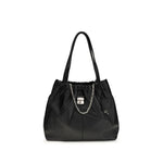 The Cristina Shoulder Bag by Marc Jacobs offers modern elegance with its clean design and thoughtful details. It features a double leather handle and a practical magnet closure. The silver-tone chain accessory adds a touch of brightness and character, enhancing the authentic style of the model. The interior, lined in tone-on-tone fabric, completes the bag with a refined balance of functionality and aesthetics.