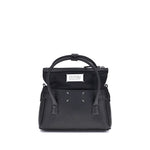 Margiela’s 5AC Leather Handbag combines sophisticated design and functionality. Featuring a double round stiff handle and a removable and adjustable chain strap, it offers multiple modes of use. The top closure with a double-slider zipper provides security and convenience, while the flat interior pocket allows for better organization of items. The front of the bag is embellished with the iconic signature patch and embroidered monogram, a symbol of the brand’s elegance. Metallic feet at the base protect the bag and ensure stability, making it a versatile and refined accessory for any occasion.