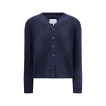 Margiela’s Wool Cardigan represents refined essentiality reinterpreted through delicate texture. With a V-neckline and knit made from a soft yarn, this garment lends depth to a minimalist shape. Ribbed edges define the line with elegance, while tone-on-tone buttons add understatement. On the back, the characteristic four stitches, an unmistakable symbol of Maison Margiela, complete the design.