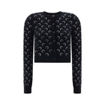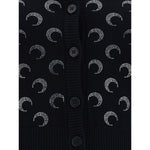 Cardigan by Marine Serre, ribbed crew neck, button front closure, ribbed hem, ribbed cuffs, iconic all-over contrasting brand logo, slim fit.