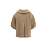 The Corvino cape Jacket by Max Mara is a refined and sophisticated garment, made from a fine blend of virgin wool and alpaca, ensuring warmth and softness. The short, enveloping design is enhanced by side slits, which allow freedom of movement, while the wide lapels add structure and elegance. The welt pockets on the sides add functionality without sacrificing style. The three-button front closure and additional buttons under the arms complete the look, making this jacket a versatile piece that is perfect for any occasion, from day to night.
