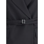 Max Mara Sportmax’s Tubinga long Blazer is a tailored piece in yarn-dyed pure wool canvas that is elegant and structured. Featuring an arrow lapel neckline, it has a double-breasted closure with concealed snaps that enhances its clean lines. A double-turn belt with an S-buckle buckle defines the silhouette with a distinctive modern touch.