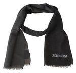 Missoni Gray Wool Unisex Neck Wrap Shawl Fringes Logo Scarf
