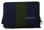 Missoni Green Striped Wool Unisex Neck Wrap Shawl Blue