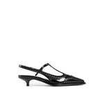 – Composition: 100% calf leather – Inner: Leather – Insole: Leather – Sole: Rubber – Pointed toe – Patent effect – Elastic back insert – Perforated detail – Adjustable buckle closure – Branded insole – Heel 3,5 cm – Made in Italy – Gender: WOMEN –