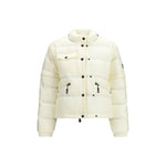 The Mauduits Down Jacket by Moncler Grenoble combines technical performance with contemporary style in a compact, functional design. Crafted from padded nylon, it features a cropped silhouette with a concealed hood adjustable via drawstring. The front zip fastening is complemented by a double row of buttons to adjust the shape, while front zip pockets and a flap-and-button chest pocket add practicality. Long sleeves with elasticated cuffs include zip openings to convert them into short sleeves, and an internal drawstring at the hem allows for volume adjustment. The logo patch on the sleeve, light blue polyester lining, breathable back detail, and rear pocket complete the design. Packable and versatile, this jacket is built for protection and adaptability in all conditions.