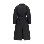The Zake Trench coat from the Moncler x EE72 collection by Edward Enninful is crafted from technical 3L Polyester with Nylon laqué sleeve lining, it combines durability with comfort. The design features a button closure, welt pockets, and a removable belt to define the silhouette. Adjustable back vents with button fastening and detachable internal suspenders allow the trench to be carried over the shoulder like a bag. Finished with the iconic logo patch, it merges functionality with contemporary style.