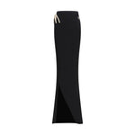 The long Skirt by Moncler + Rick Owens is a fitted jersey style featuring a side drawstring for an adjustable fit and a slit that adds a dynamic touch. The iconic Moncler logo patch provides a distinctive detail, for a look that combines elegance and streetwear functionality in a contemporary way.